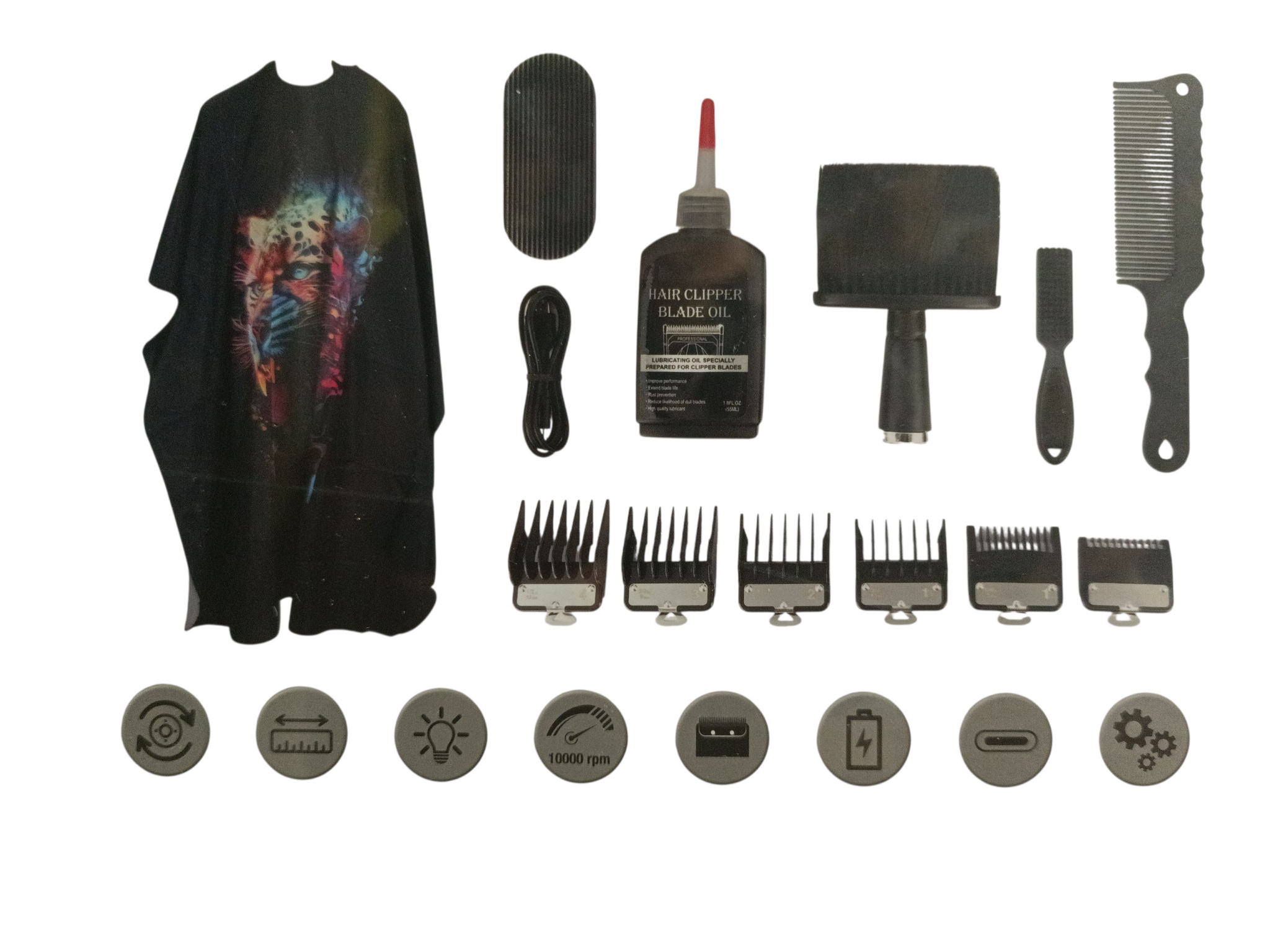 • . Incluye 6 peines guía: (1.5 mm - 3 mm - 4.5 mm - 6 mm - 9 mm y 12 mm)