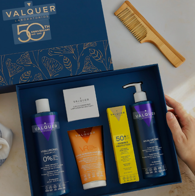 Hazte con el Cofre Edición Limitada 50 Aniversario Valquer y eleva tu cuidado personal con una selección premium de productos top ventas. Ideal para regalar o regalarte, esta colección exclusiva combina innovación, eficacia y sensorialidad en cada uso.